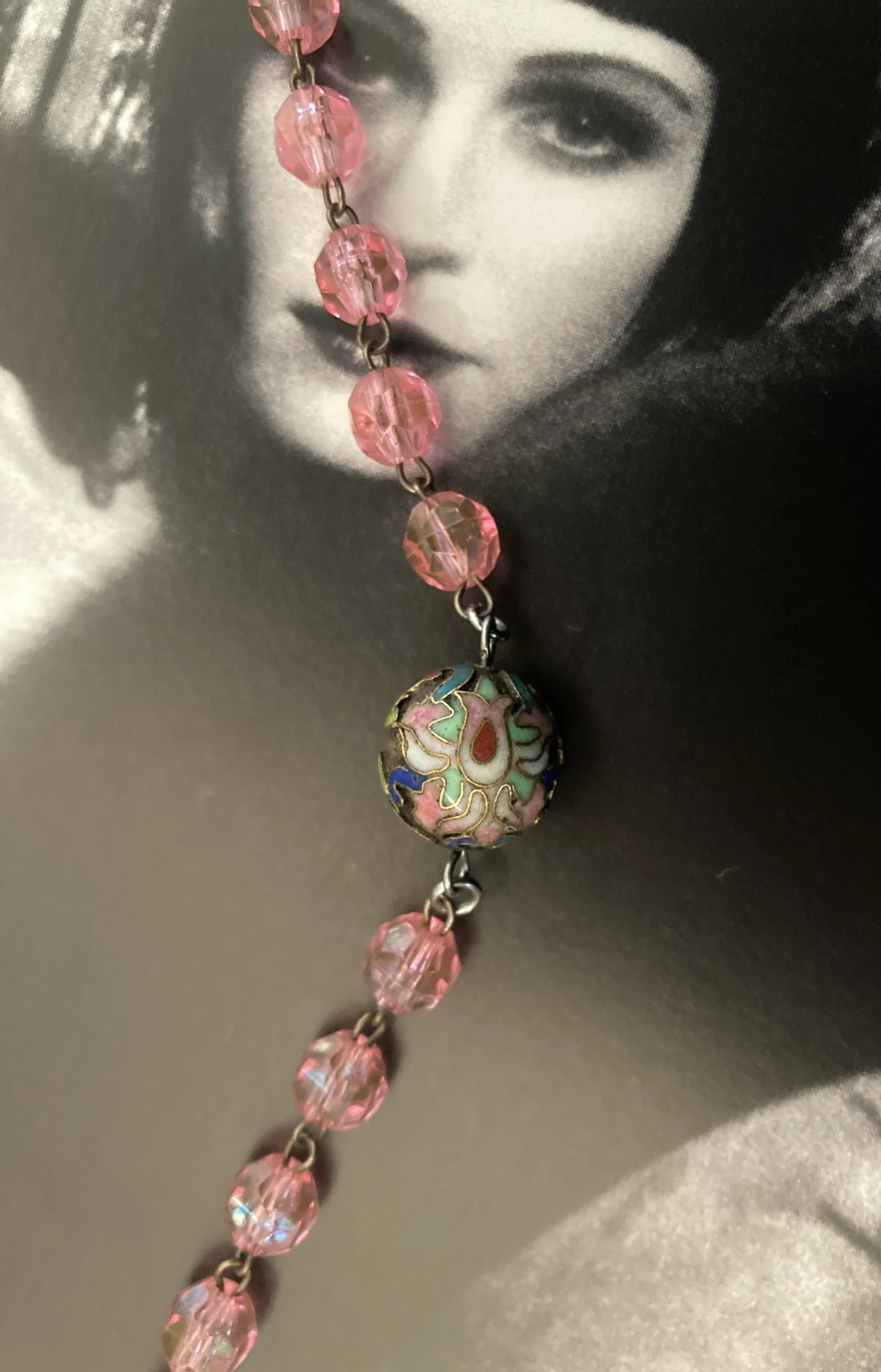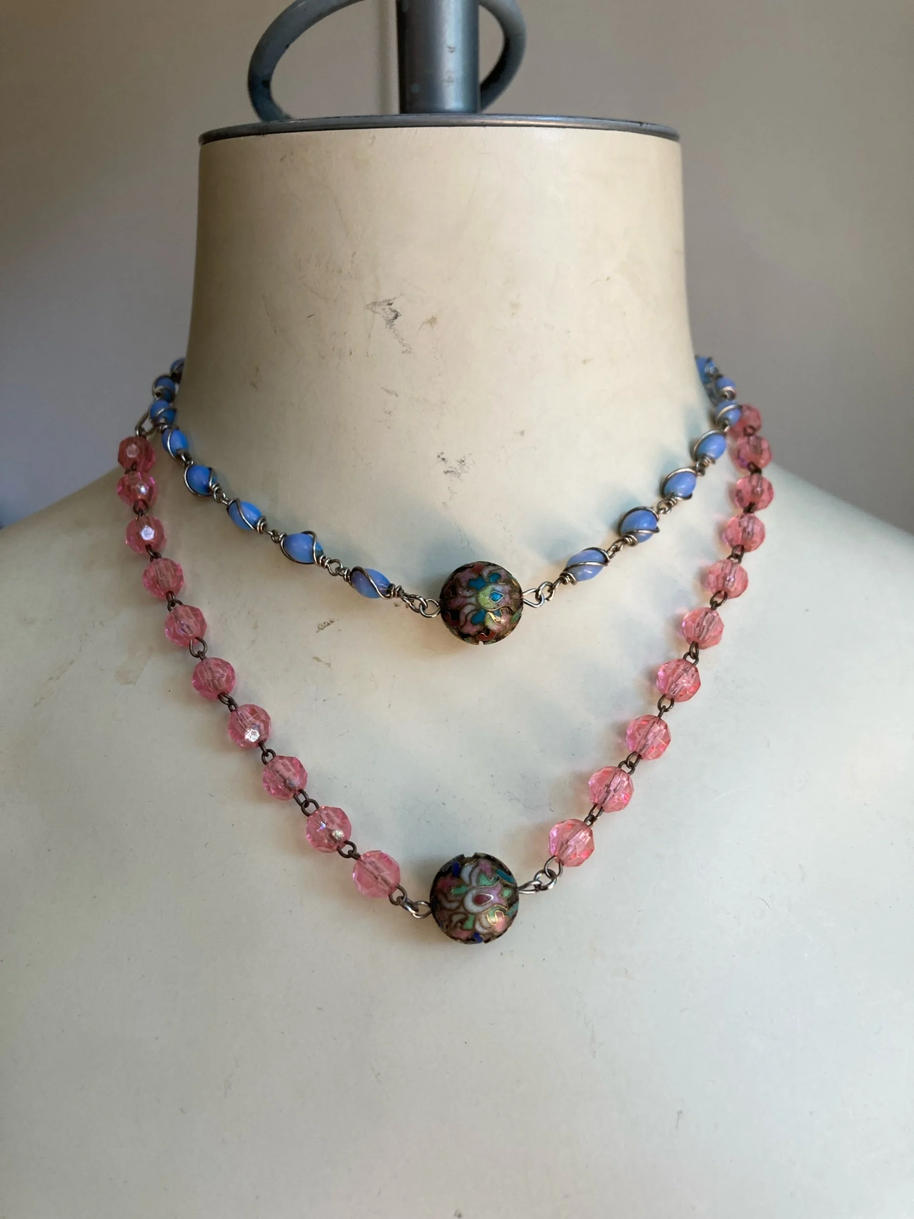 Breathing new life into old things! This piece marries salvaged, vintage chains and elements together to create a one of a kind, attention grabbing necklace from pieces that would otherwise have been thrown away! Colorful vintage beads feature an enameled bead at the center and are finished with new stainless steel paperclip chain and clasp. Each enameled bead is slightly different.